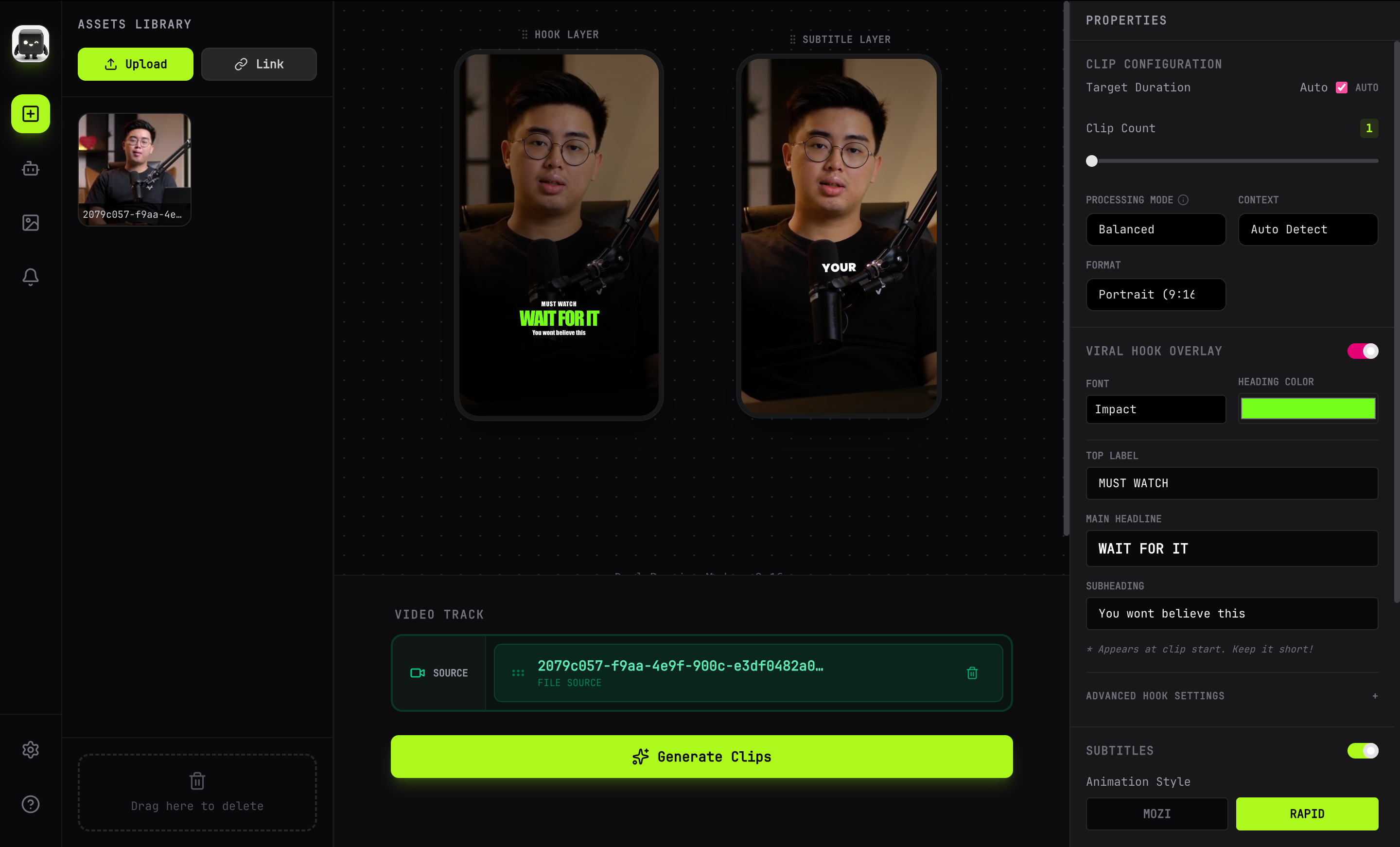 In this Early Access version, you can enjoy two subtitle styles, one hook style, multiple font options, and support for two LLM providers. Clipiee also includes three selectable transcription models for improved flexibility.